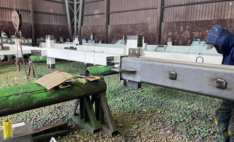 姫路市広畑区で、引き続き鉄骨の塗装を行います。