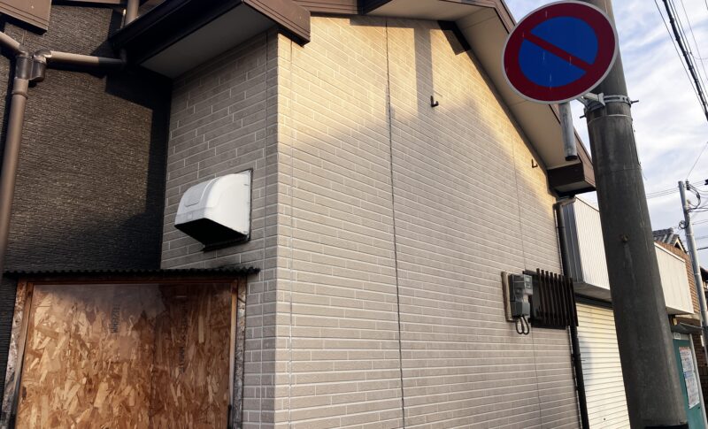 お店の方が外壁に、強力な両面テープを使って看板を取り付けたので、外壁の塗膜が剥がれてしまいました。