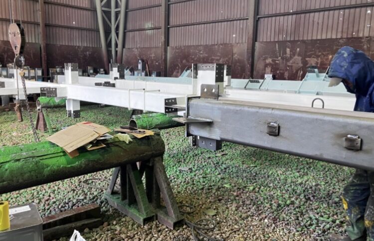 姫路市広畑区で、引き続き鉄骨の塗装を行います。